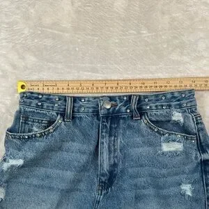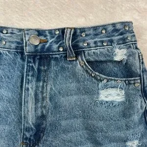 Barbie - Forever21 Blue Jean Shorts with Pink Logo - Bedazzled Gemstone Waist