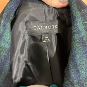 Talbots Green Blue Plaid Tartan Blazer 3 Button Up Wool Womens Jacket Sz14