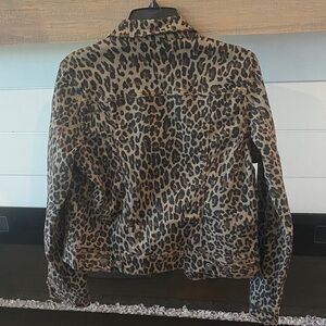 Stylish jean jacket with bold leopard print. Soft, mid weight fabric-perfect for layering with jeans or dresses. Excellent pre owned condition.