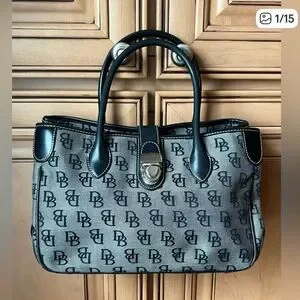 Dooney and Bourke Signature Small Double Handle Black and Gray Tote