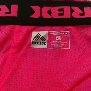 NWT RBX Live Life Activewear Shorts size XL Black with pink trim and pink lining. Drawstring waist 4.5" inseam. Measured waist 38"