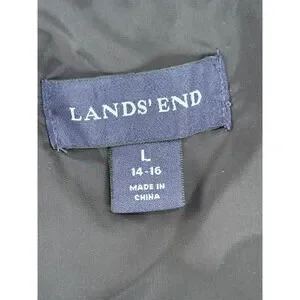 Lands End Thick Down Puffer Vest Womens LARGE Black Feather insulated Jacket ECU