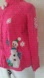 Charming pink sweater with snowman embellishments. Features playful designs and vibrant colors.