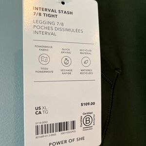 NWT Athleta Interval Stash 7/8 Legging XL - Aspen Olive