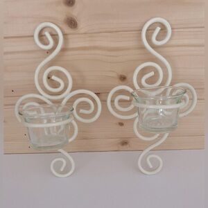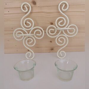 Wall Sconces Wrought Iron Ivory Beige Set of 2 with Glass Tea Light Holder