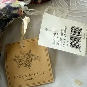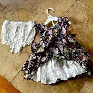 Laura Ashley, London little girls floral sleeveless dress and WT never worn you. A tag ties in the back with three top buttons in the back sleeveless ruffled him ruffled sleeves comes with panties ruffled lining, beautiful little girls dress.