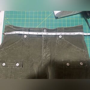 Trendy corduroy mini skirt with button details. Features front pockets and a frayed hem.
