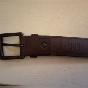 Stylish dark brown leather belt by Columbia. Features a sleek metal buckle. Ideal for casual or formal wear.