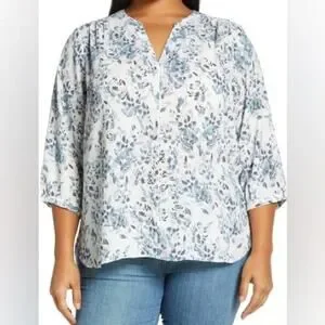 NYDJ Semisheer Pintuck Blouse in Frosted Willow Women’s Sz M