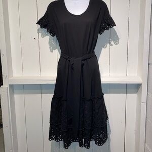 Rachel Parcell Black Eyelet Ruffle Dress Teared Layer Women’s XS