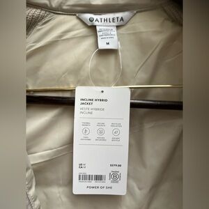 Chic puffer jacket with a cozy design. Features a stylish cream body and sleeves. Ideal for cold weather.