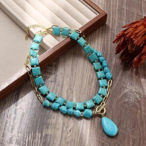 Boho Turquoise Pendant Necklace — A vibrant, statement piece with a touch of southwestern charm.
