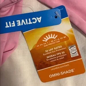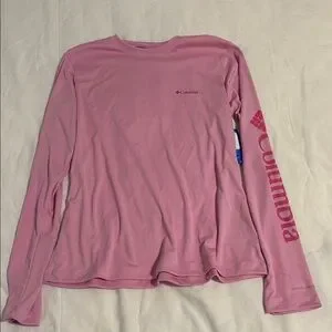Soft pink Columbia long sleeve Omni Shade Tee 50 UPF excellent sun protection. Active fit.