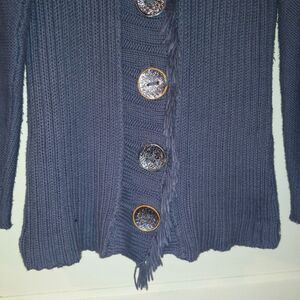 Anthropologie Pure Handknit Size S/M Ribbed Knit Cardigan-Metal Buttons-Fringe