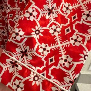 Vibrant red jacket with geometric patterns. Eye-catching design. Ideal for stylish outings. Soft and comfortable perfect for the holiday season. Like new