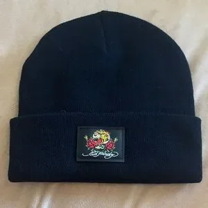 ❤️ - Ed Hardy Black Knit Hat with Tiger and Rose Design