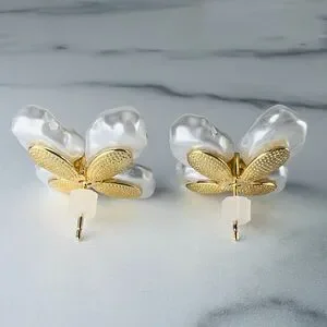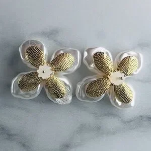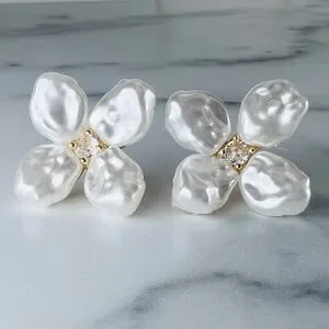 Gold-plated brass with freshwater baroque pearl petals and a single crystal at the center.