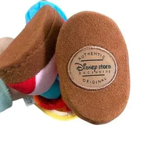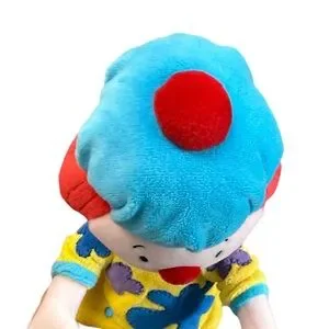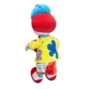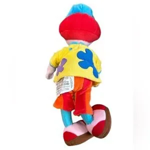 Charming Disney clown plush with bright colors. Features red shoes and a blue hat. Soft and cuddly for playtime fun.