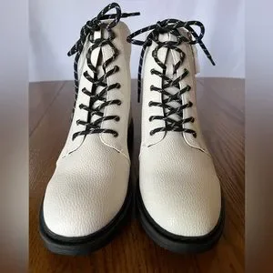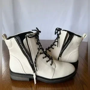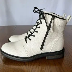 Baretraps Amysue Light Goth Combat Grunge Zip Cream White Ankle Boots Size 10