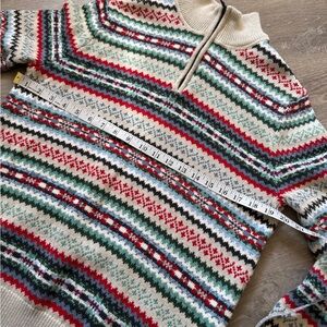 Add a bold touch to your casual wardrobe with this stylish zip-up sweater from Nautica. Featuring a vibrant color pattern in cream, red, green, and black, it’s perfect for layering on cool days or casual outings.