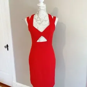 Milly Red Cutout Sheath Dress Size 4 – Fitted Cocktail Party Dress