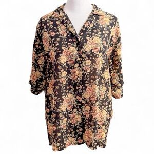 Vintage 90’s Yves St Clair slightly sheer black floral print button down blouse size 12, see pictures for measurements. Missing the bottom button but in otherwise great condition. Always shipped same or next day. #cottagecore #fairycore #boho #whimsygoth #retro