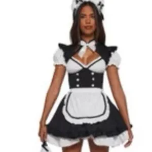 Charming kids maid costume in classic black and white. Perfect for dress-up and themed parties.
