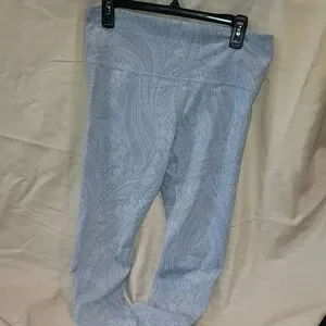 Chic Athleta leggings with a unique textured pattern. Ideal for fitness or everyday style. please see photo for approximate measurements. color is called Dreamweaver blue