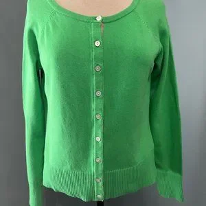 Vibrant green cardigan with button front. Soft and stylish. Perfect for layering.