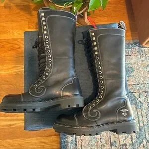 John Fluevog 7th Heaven Zachary Tall Angel boots black size W9 M7 NWOB