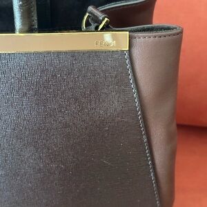 Fendi Leather 2Jours Medium Dark Brown Leather Tote. Top handle.