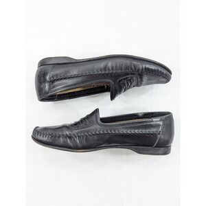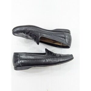 Santoni Black Leather Loafer Mens Size 8 D Italy Made Casual Shoes 441348