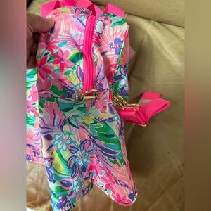 New with Tag and never used Lilly Pulitzer Beale weekender bag in Multi Disney Dreamin. Large zippered pocket on outside; other side has loop to hold on suitcase. No inner pocket. Hand strap and optional shoulder strap. Size is in pictures.