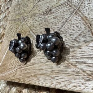 These elegant antique screw back silver toned grape cluster earrings add a touch of sophistication.