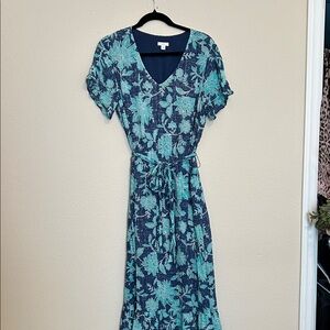 J. Jill Teal and Navy Floral Midi Dress