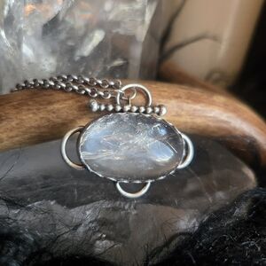 Sterling silver and clear crystal quartz oval necklace handmade by me. Gorgeous natural rainbow inclusions!