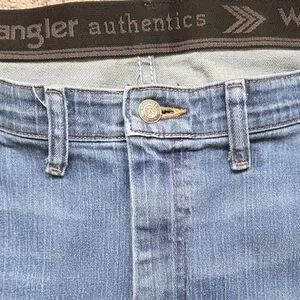 • Wrangler Authentics men's regular fit comfort flex waist denim jeans, size 46x30
