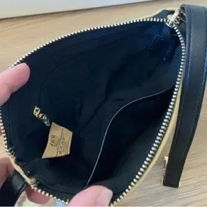 Chic Dior crossbody bag in beige with black accents. Features elegant branding and a stylish strap. Ideal for versatile wear.