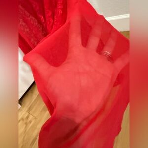 Vintage Shirley Red Floral Lace Floor Length Nightgown