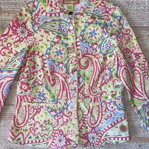 Lilly & Van Colorful Paisley Print Denim Button Up Jacket / Blazer Size Small