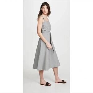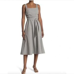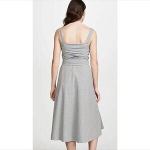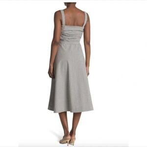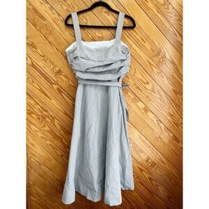 Our fit-and-flare Positano dress features a midi silhouette, ruched detailing, and charming square neckline. The gingham seersucker style is the perfect dress for afternoon parties or lunch with the ladies.