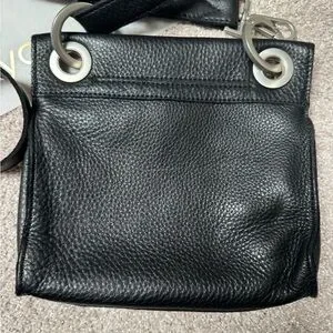 Rare Hammett Tony small black grained leather with brushed silver hardware
