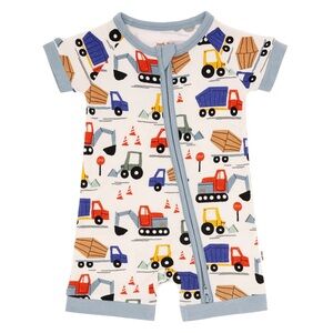Little Sleepies shorty zippy construction vehicles romper bamboo baby boy trucks