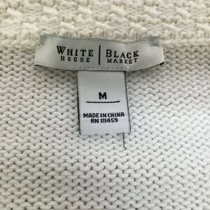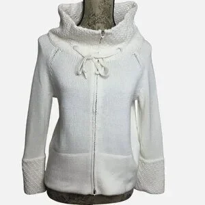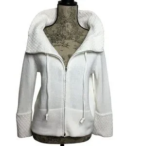 WHBM White Textured Knit Zip Sweater M Quiet Luxury Cozy Capsule Neutral Chic