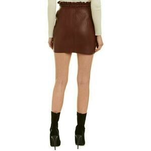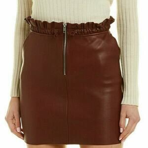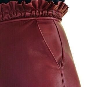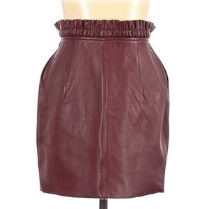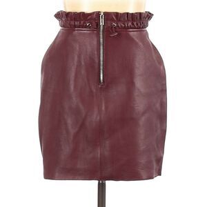 MAJE Jet zipped leather burgundy pencil straight mini paperbag skirt Size 1 NEW