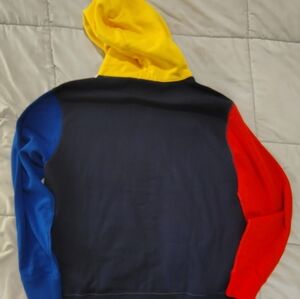 Stand out with the Ralph Lauren Colorblock Polo Bear Hoodie. Featuring vibrant red, blue, yellow, and white colors, this hoodie combines style and comfort. Perfect for casual outings.