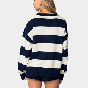 EDIKTED 2 Piece Set - Riley Oversized Stripe Knit Sweater and Shorts Small