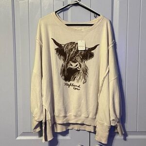 Free People Highland Cow Graphic Camden Sweatshirt ~ Size Large ~ NWT