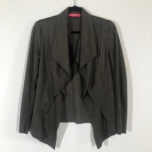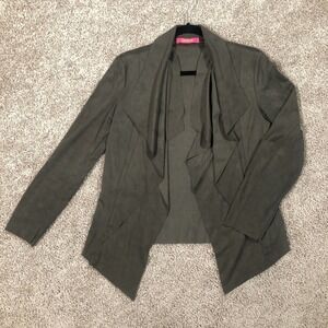 Catherine Malandrino Olive Green Faux Suede Cascade Open Front Jacket Petite S