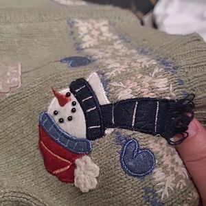 Croft & Barrow Womens medium Petite Super cute Ugly Sweater long sleeve green featuring Holiday snowmen, Snowflakes, embroidered gloves, 3d fuzzy scarfs and beads on the snowmen. Acrylic, rabbit, wool, nylon blend. Super soft and beautifully made. Full length zipper with snowflake pull. It measures 19" across under the armpits and 23" in length. Great for that office Christmas ugly sweater dress up holiday party or truly a genuine Christmas sweater! Bundle with some of my other womens items to save and pay only one shipping!